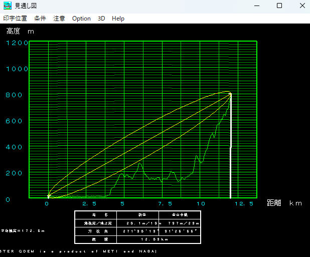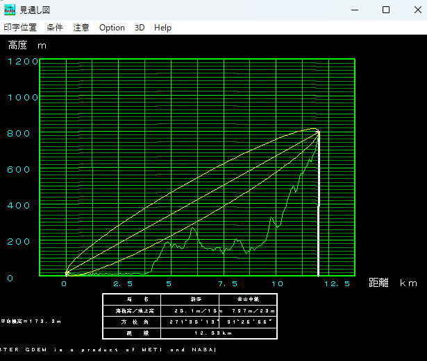但し、見通図作成時は左下に、ASTER GDEM利用のメッセージが付きます