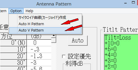 注意:この機能は簡易機能の為、精度を上げるには空中線メーカのパターンデータより入力して下さい。