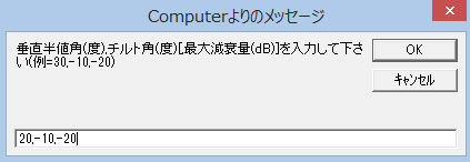 b.半値角とチルト角及び最大減衰量(dB)(省略可能)を入力