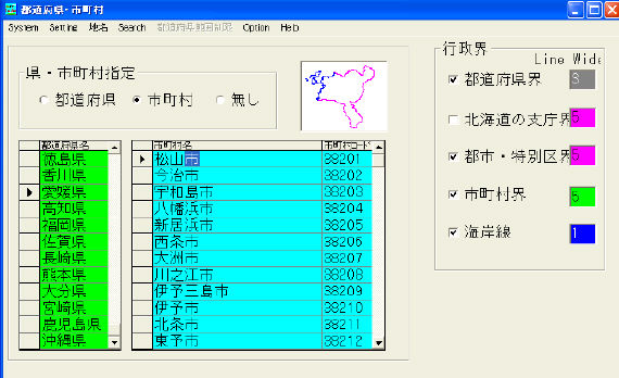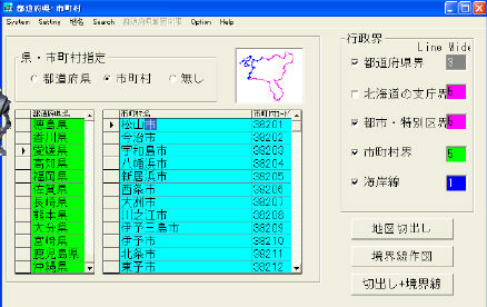−1.都道府県・市町村の行政界を指定地図の上に自動的に作図出来ます。