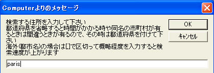 | 住所入力(海外も可能=都市名) | 住所入力(海外も可能=都市名)で地図を表示 |