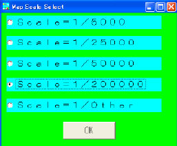 | 地図メニユーより選択 | メニユー形式で画像地図を選択、1/200000 ・ 1/25000 |