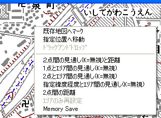 | 指定緯度経度とエリア間の見通し(k=無視) | 指定する緯度経度とエリア間の見通しを作図 |