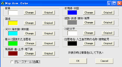 25000の色指定を押した時(各画面で地図を使う時ココで指定色に従います)
