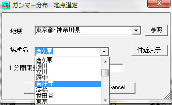 -2.場所名 1分間雨量累積分布の0.0075%値が設定されている場所名一覧より選択