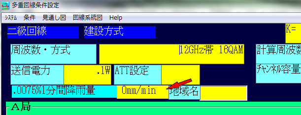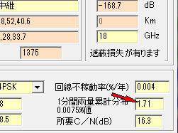 回線設計で1分間雨量累積分布の0.0075%値選定補助機能
