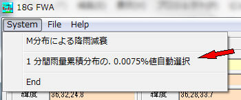a.自動選定の時は、1分間雨量累積分布の0.0075%値をチェック(最も近い地域の常数が自動選択されます。但し,緯度経度が設定されている必要が有ります)