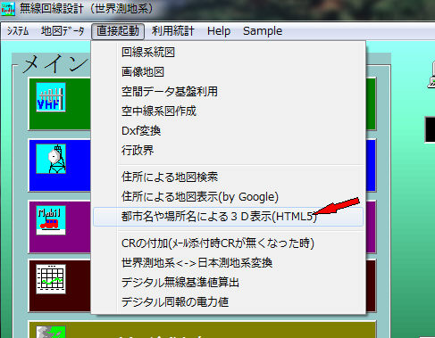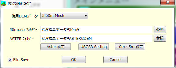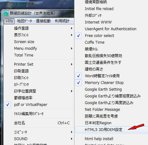 最初の画面で、システム->動作環境->HRML5 3D用DEM設定をクリック