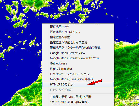 表示中の地図でマウスを右クリック->Html5 3Dで表示をクリック