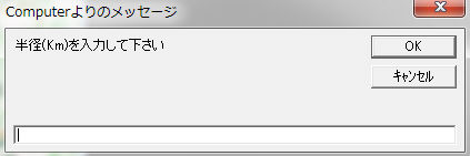目的の住所や都市名(英語・日本語可能)や場所名又は経度,緯度(例:33.2/132.123)を入力、及び/で半径(Km)指定をします