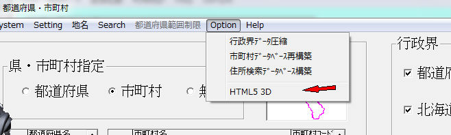 県や都市を選択後、OptionのHTML5 3Dをクリック