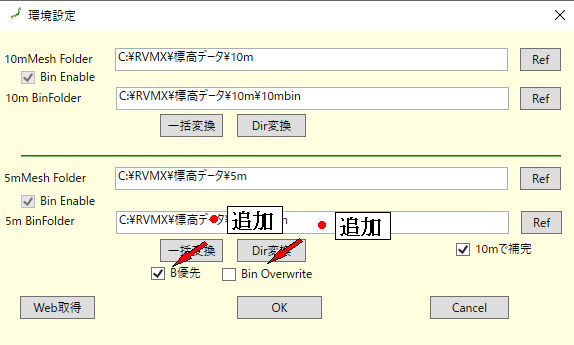 又、今まであった10mで補完機能は5mファイルが無い時のみの対応でいたが、今回ファイルが有ってもデータ抜けが有ると対応する機能を追加しました。