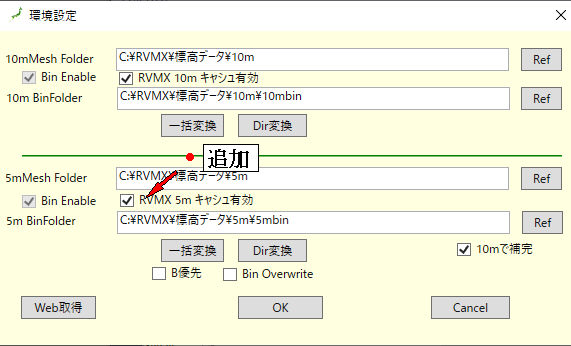 国土地理院5mメッシュでRVMXサーバーよりのキャッシュcashデータ補完機能(Cloud)(参考)が追加されました。