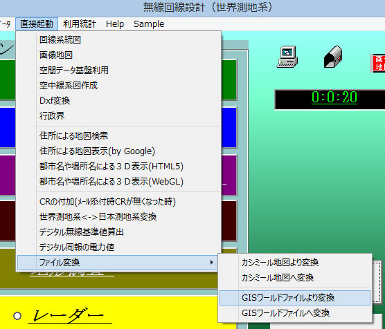 カシミール地図と回線設計等地図の相互変換をする機能です。