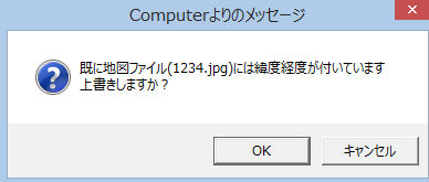 変換するファイルに既に緯度経度が埋め込まれていると、確認メッセージが出ます。