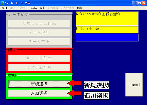 4.データ指定のメニュー(新規と追加の二つがあります)