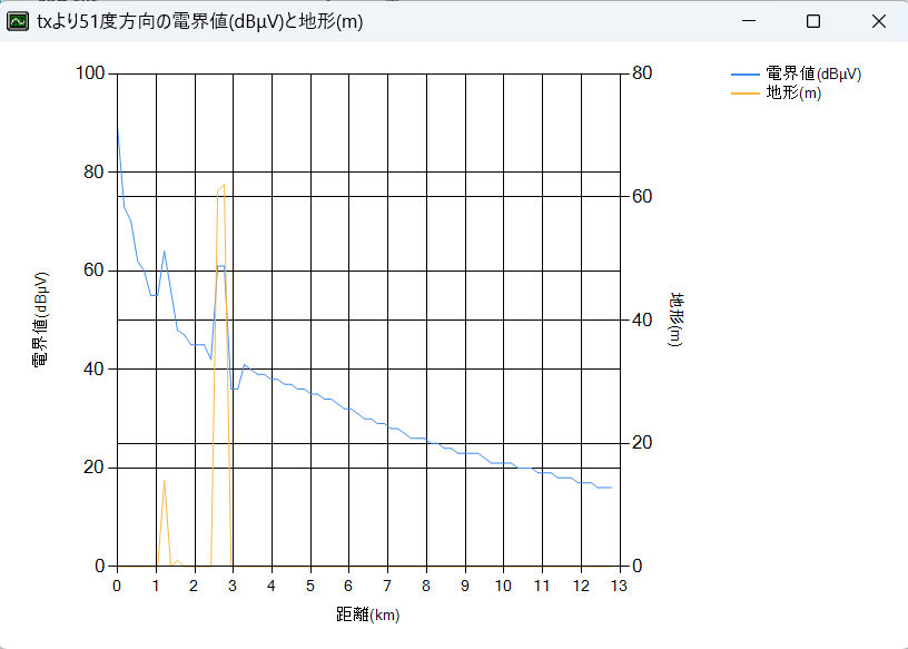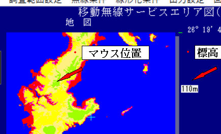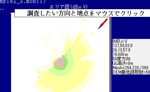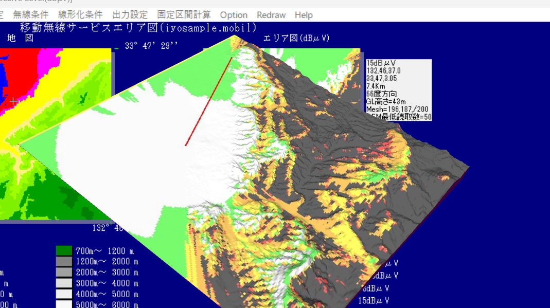 サービスエリアで指定地点の基地局よりの距離と電界・地形グラフをメッシュデータより表示する機能を追加