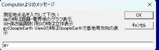 追加機能でgv(GoogleEarth View参考機能)と入力するとGoogleEarthで基地局方向の表示を行います、但しデイスクトップGoogleEarthがインストールされている必要が有ります
