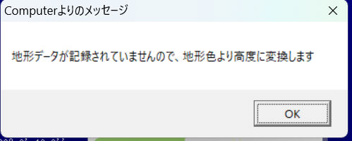 -6.2025年版以前で作成したデータの時、地形は色より変換しますのメッセージが出ます。