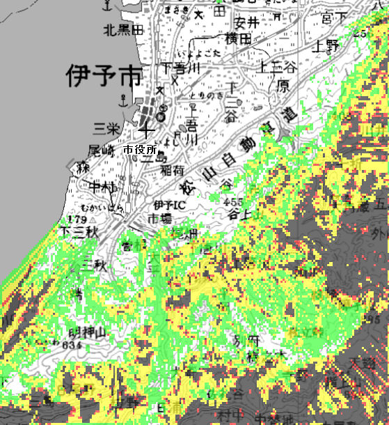 サービスエリア図は指定された基準値に対応した色で塗られていました。今回各色間をスムーズに変化させる参考機能を追加しました。