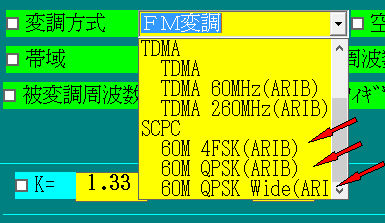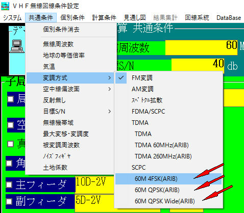 VHF・UHF固定回線やサービスエリアの無線条件設定で変調方式の変更を行います。