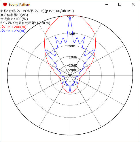 警報音等のサウンド伝搬シュミレーションでラインアレイ(トーンゾイレ)スピーカの自動パータン作成参考機能