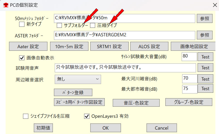 但し、サウンド伝搬シュミレーションではサブフォルダーと圧縮の設定はもし間違っていても
