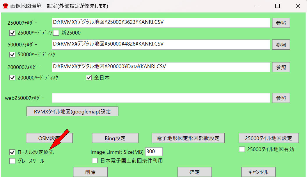 a-1.ローカルの設定を優先するにチェック、この設定は画像地図の設定内にあります。