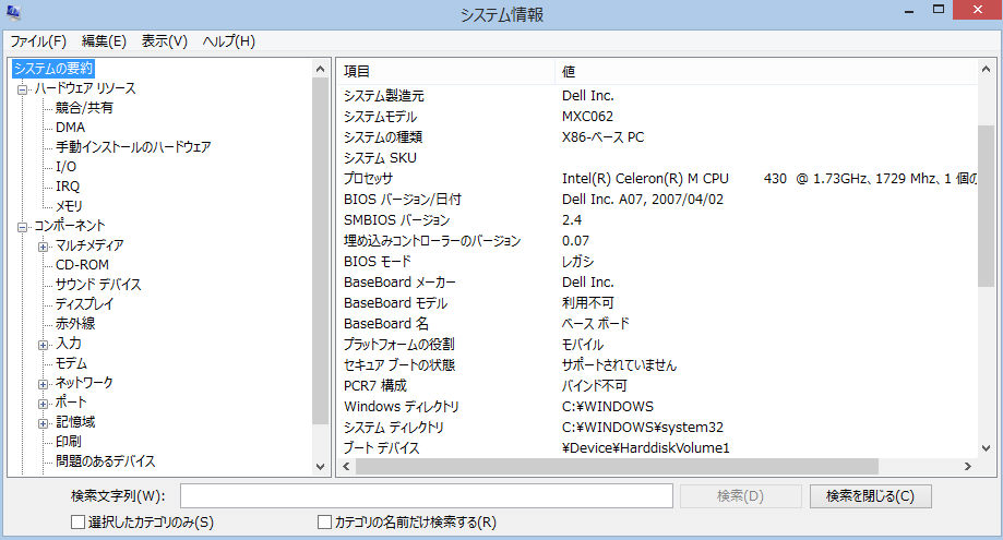 -2.システム(標準インストール)にmsinfo32.exe(Microsoft製)が有るとき、これを起動して表示機能を追加