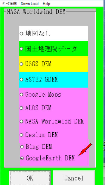 1や2では、DEM設定でGoogleEarth DEMのメニューが出てきません。