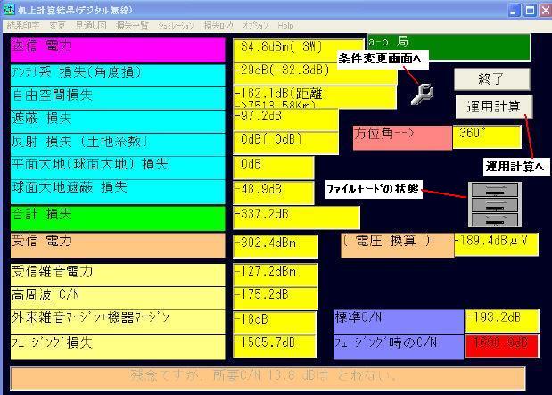 | 計算結果画面 | VHF条件設定へ 運用計算 |