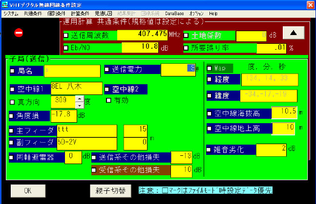 | 球面大地等見通外損失 | 机上 運用 設計区間で平面大地損失が計算上発生している場合、これを制御したいときにチェックします |