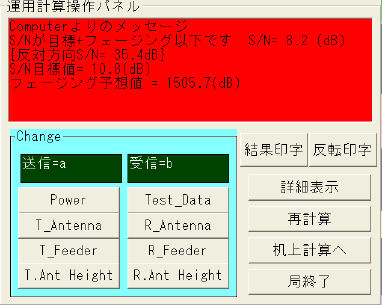 | 計算条件変更 | VHF回線条件設定画面へ戻ります。 |