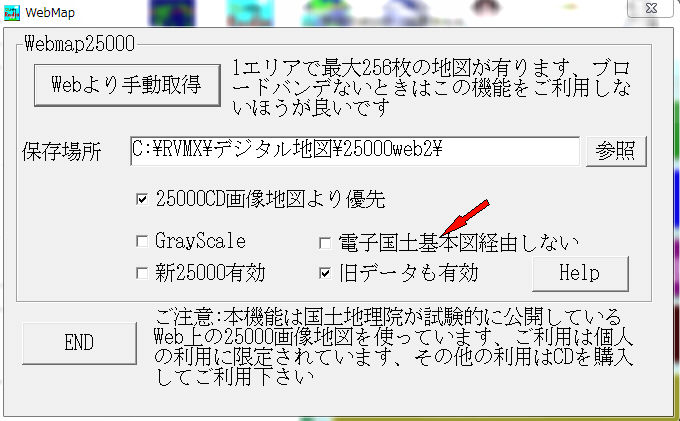 但し、電子国土基本図(地図情報)の仕様変更や停止時には動作しません。