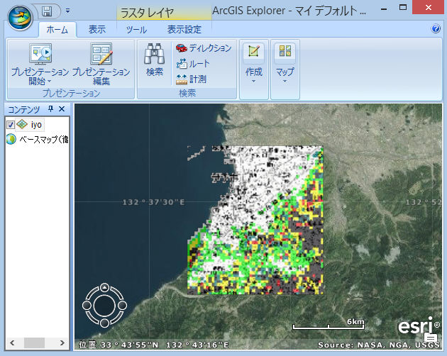 -1.GISワールドファイルへ変換し、ArcGISソフトで表示例