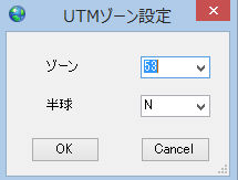 d.ワールドファイルがUTM(ユニバーサル横メルカトル)で作成されているときは、ゾーンと北半球・南半球の選択画面が出てきます。