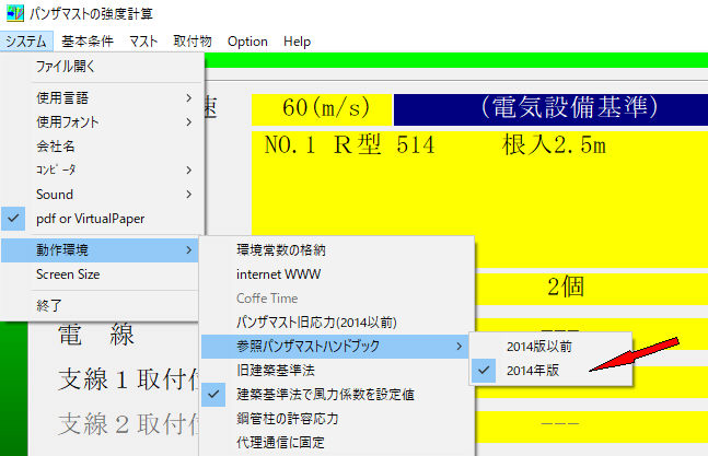 -1. システム->動作環境->参照パンザマストハンドブック->2014年版以前と2014年版が選択できます。