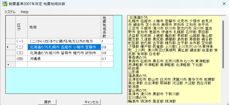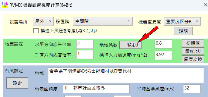 RVMX強度計算では今まで、地震地域係数は数値の直接入力となっていました、変更が有っても機能的には問題ないのですが。