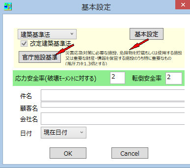 基本条件->官庁設備基準(建築基準法時のみ有効)をクリック