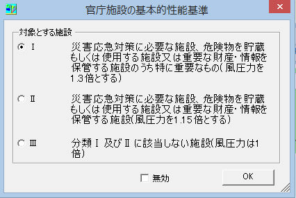 但し、H25官庁施設の基本的性能基準には耐地震に関しては別途となっており、この機能では非対応となっています。