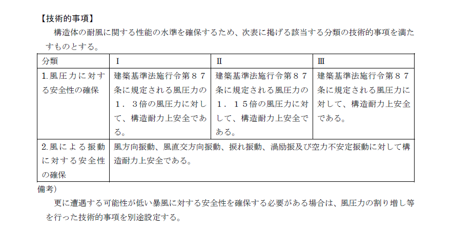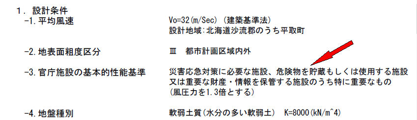 施設の用途により風圧力を増加して検討