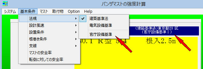 パンザマスト強度計算で建築基準法対応(H12改正)の追加機能