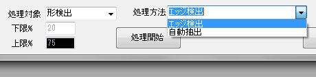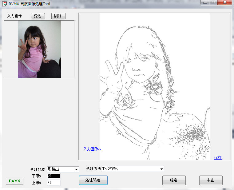 入力画像に対して、下限値と上限値により、エッジ検出します オプション=下限値及び上限値及びエッジ色・背景色