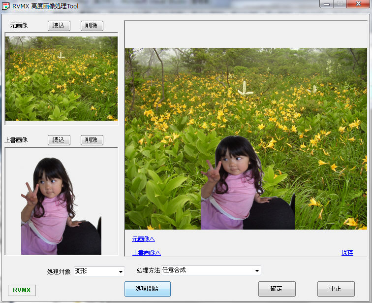 入力画像に対して、マウスで指定した指定範囲に上書画像で上書きします オプション=無し