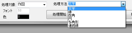 入力画像に対して、指定文字を指定フォント・指定色でマウスで指定した指定位置に描きます オプション=フオント及び指定色と透過度%