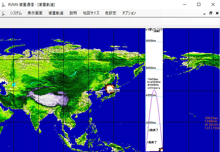 但し、この予測はロケットシュミレーションの機能紹介で、ロケットの詳細データが不明な為この軌道は参考で精度は有りません