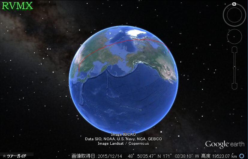 同じミサイルでアメリカ本土方向と仮定(20度方向・打上げ角度83度)し予測