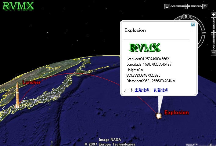 ミサイル弾道のツアー機能が追加(2断ロケット、液体燃料UDH25搭載、弾頭1t)。(保留のTourをダブルクリック)