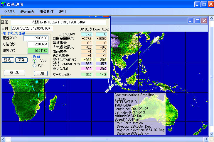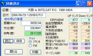 結果印刷例(地球局データは架空のものです)