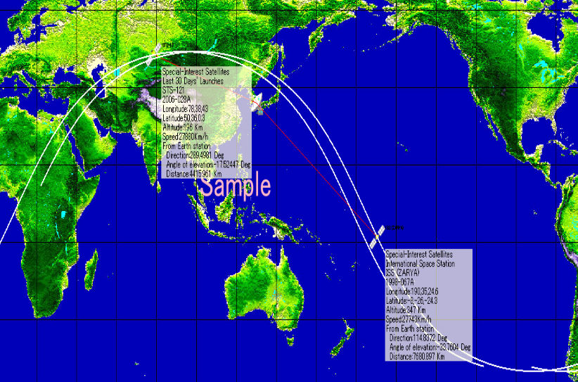 3.衛星軌道表示(1秒間隔で自動計算)